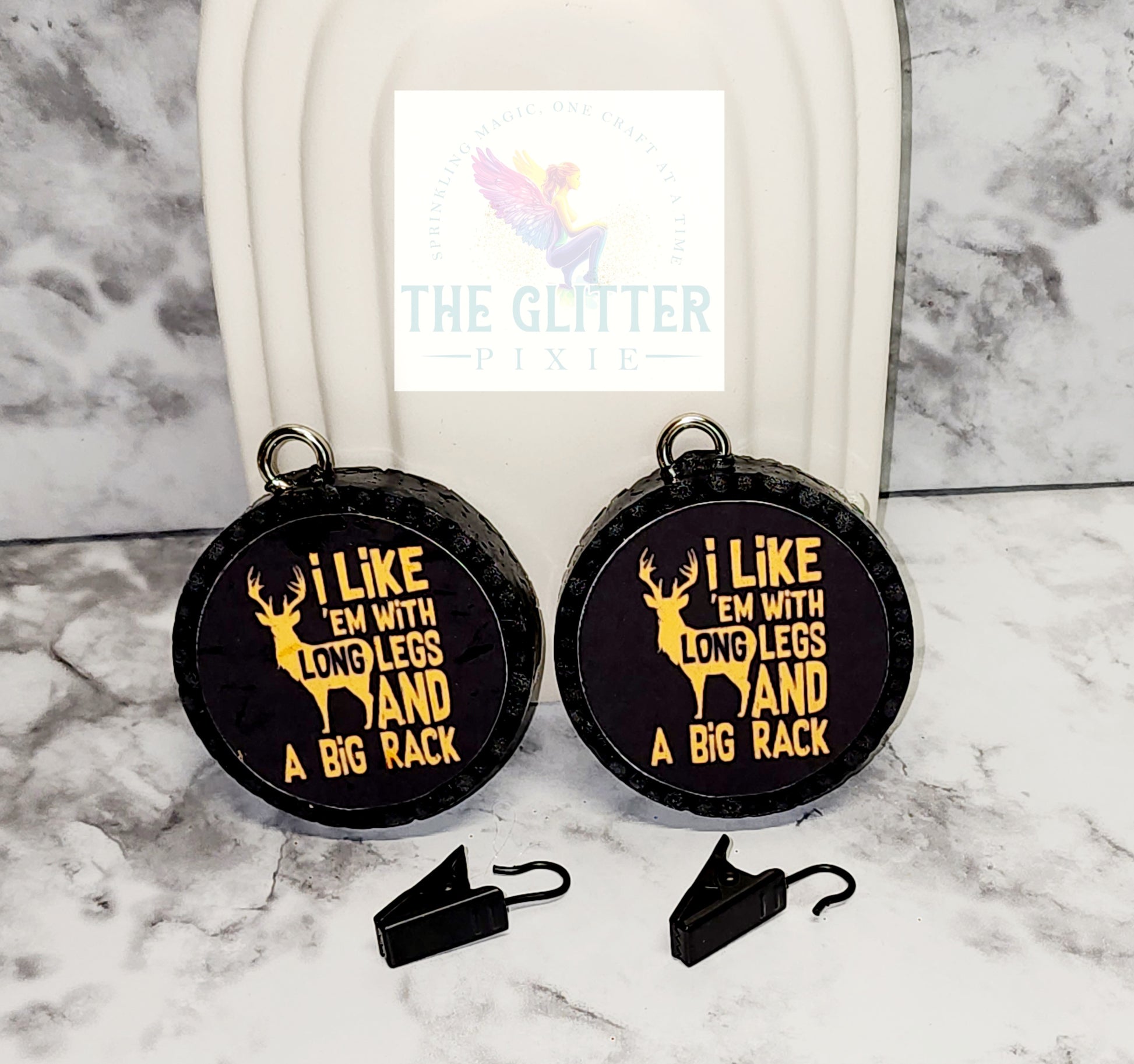 Get your car smelling fresh and fun with Deer Vent Freshies in Black Ice Scent. With the playful slogan "I Like 'Em with Long Legs and a Big Rack," these vent freshies add a quirky touch to your car while eliminating odors. Don't settle for boring air fresheners - spice up your ride with Deer Vent Freshies.
