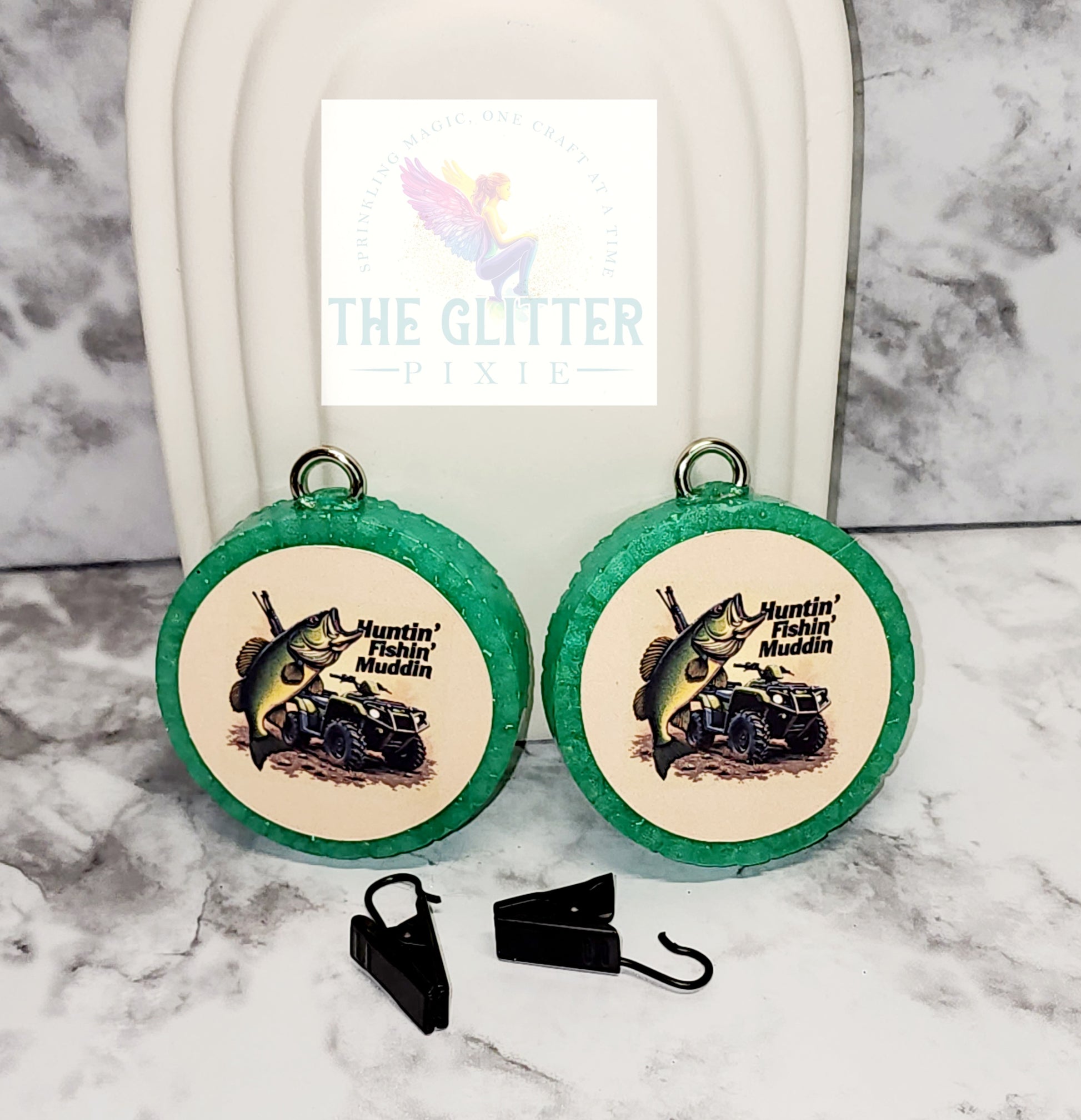 Get ready to hit the road with our Huntin' Fishin' Muddin' Vent Freshie! This quirky air freshener in Maple Apple Shortbread Cookie scent will keep your car smelling fresh and fun on all your adventures. No more stale air, just sweet and unique vibes!