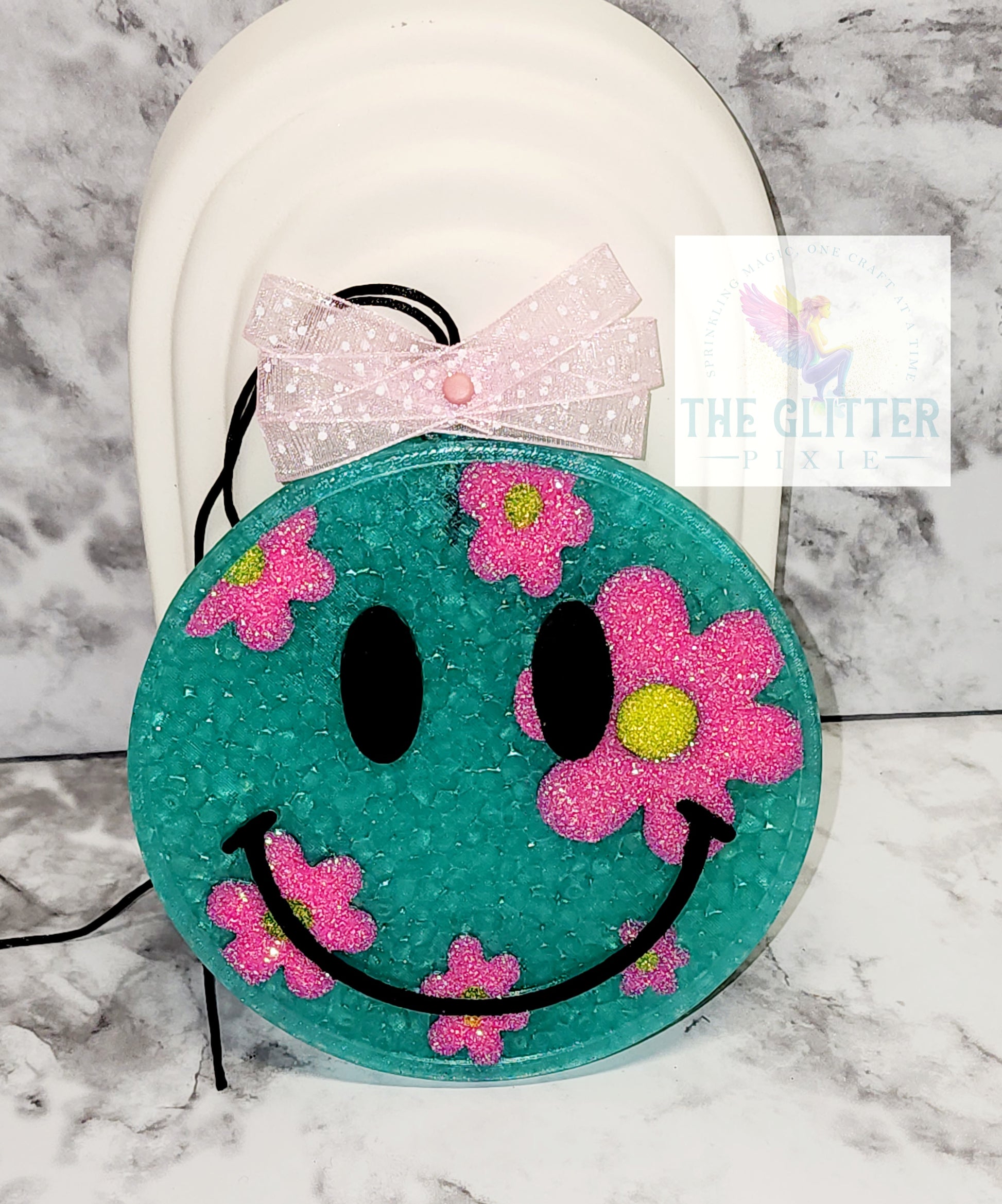 Add some cheer and fragrance to your space with our Smiley Face with Flowers Freshie in Leaves Scent! This adorable freshie combines a cute smiley face design with a fresh and delightful leaves scent. Perfect for bringing some joy and freshness to any room or car.